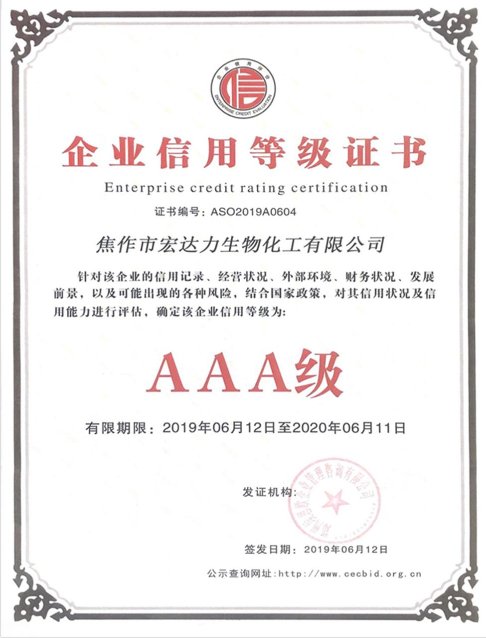 Enterprise Credit Rating Certificate